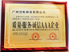 質(zhì)量·服務(wù)·誠(chéng)信AAA企業(yè)證書(shū) (創(chuàng)乾梯具)