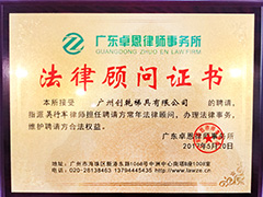 法律顧問證書 (創(chuàng)乾梯具)