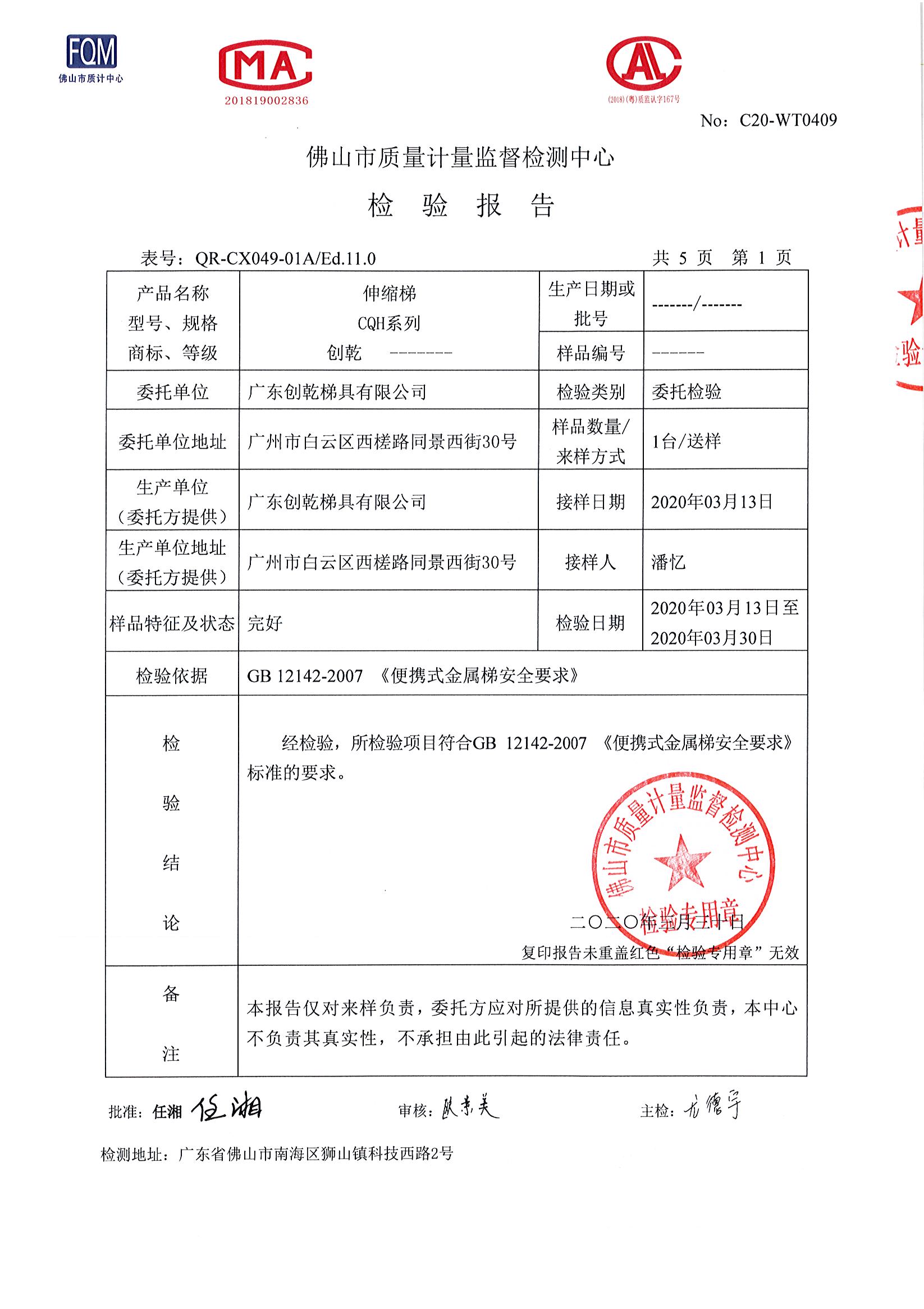 - 創(chuàng)乾折疊梯檢測(cè)報(bào)告