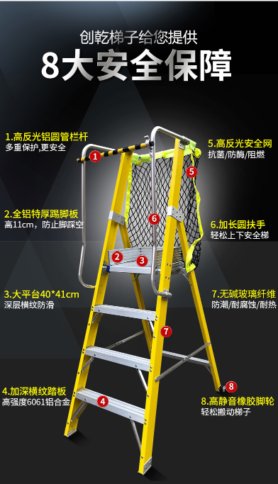 今天深圳保安區(qū)的王總通過朋友推薦找到咱們創(chuàng)乾梯子,現(xiàn)在工地需要用安全人字工程梯玻璃鋼半絕緣平臺梯,CQJF絕緣扶手五步梯子適合工地用,國外企業(yè)單位也有很多用,屬于工程作業(yè)中指定的梯子產(chǎn)品。欄桿起到安全防護作用;特厚踏板防止腳踏空,輪子可以隨時移。
