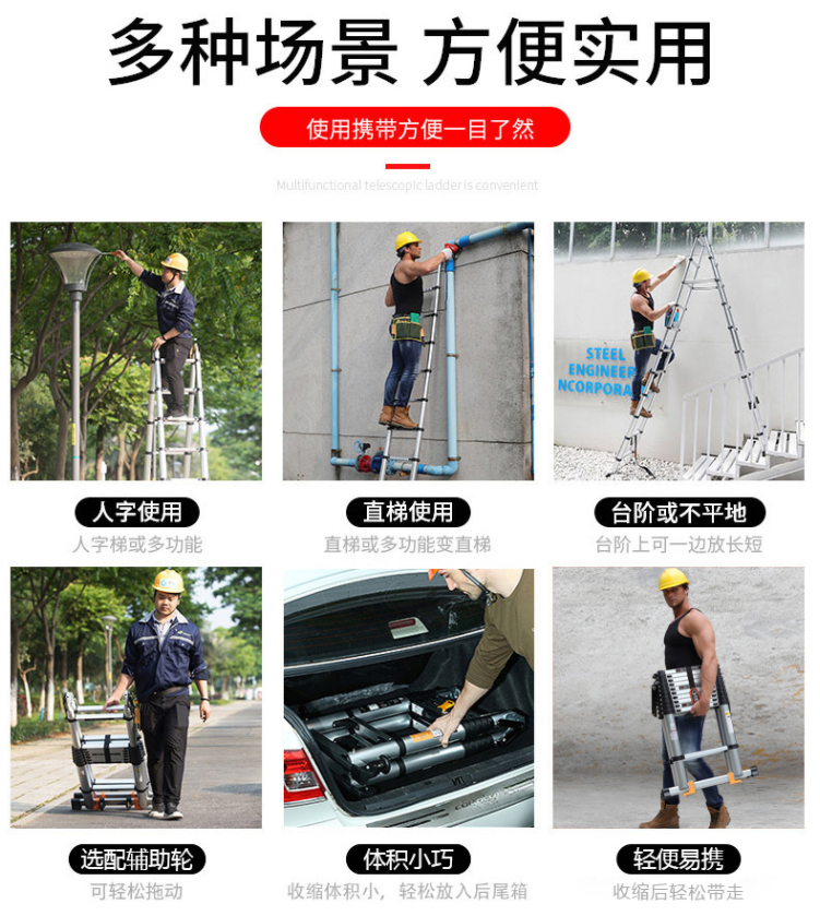 很多工人朋友在使用梯子工具的時候,公司/單位配的梯子一般高度是固定的,在不同的地方作業(yè)時,往往需要多把不同高度人字梯(單梯)輪流使用,很是不方便。為解決這個問題,創(chuàng)乾梯具,供應一種伸縮式和折疊式的梯子。
